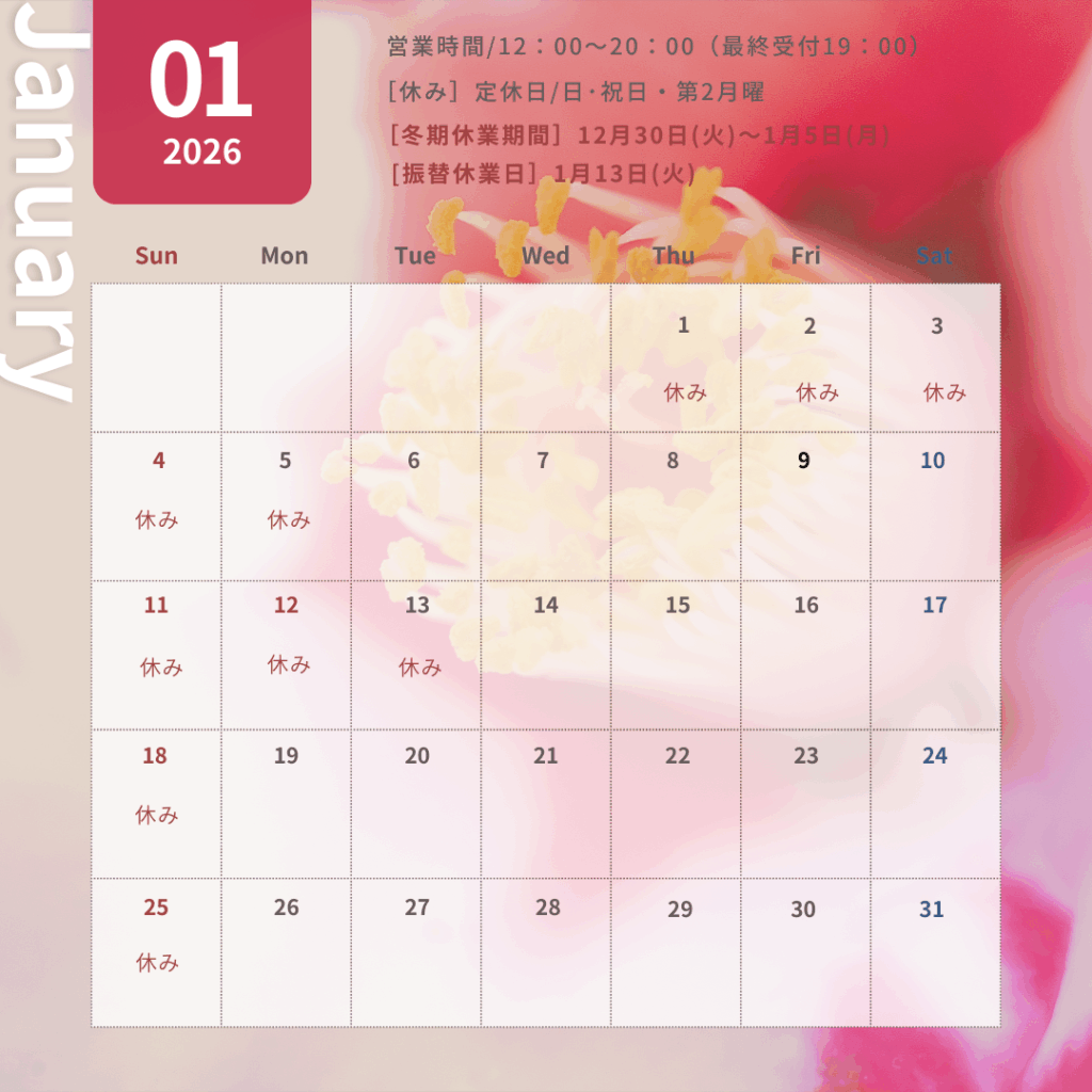 ■定休日以外の休業日:1月13日(火)