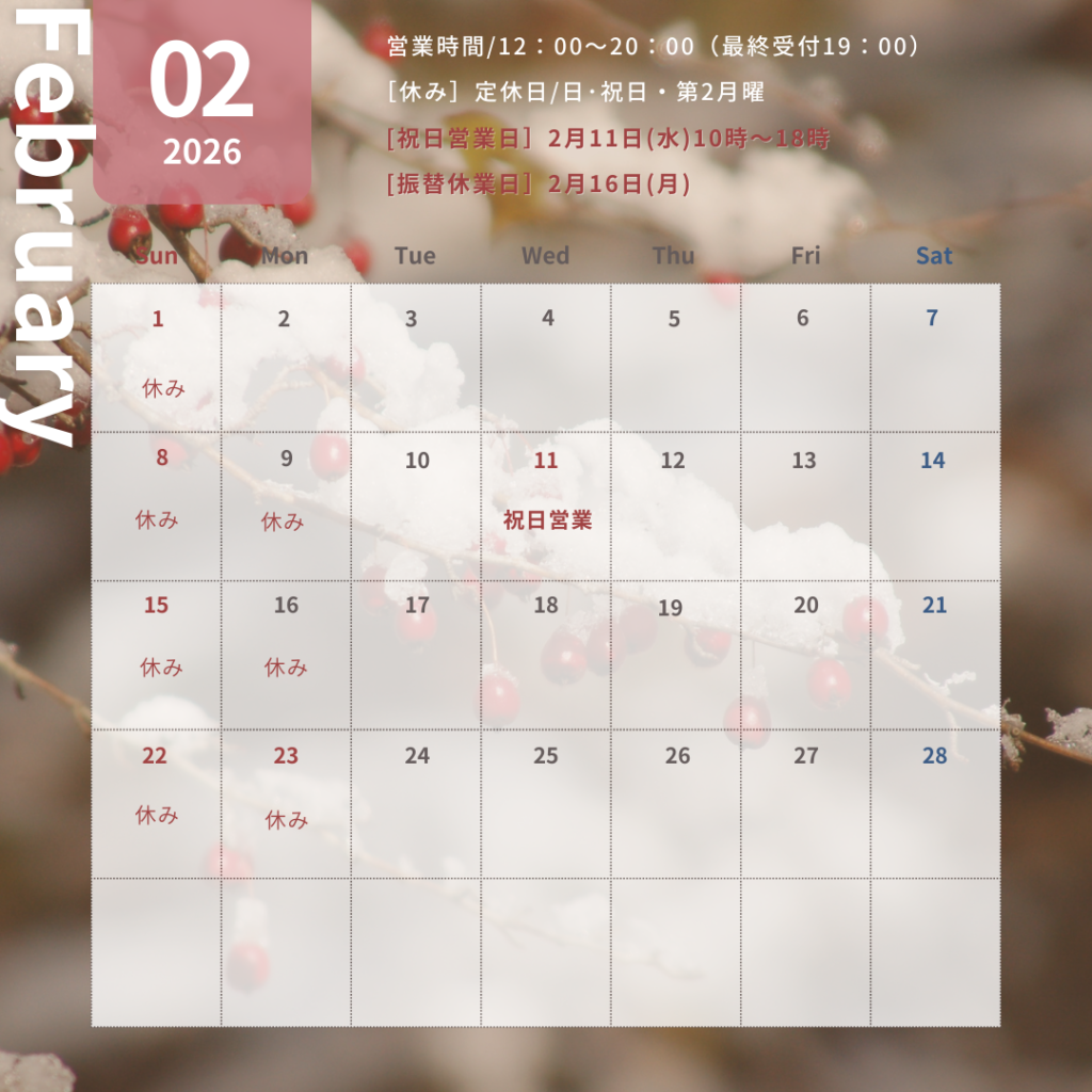 ■祝日営業:2月11日(水)10時~18時で営業いたします。