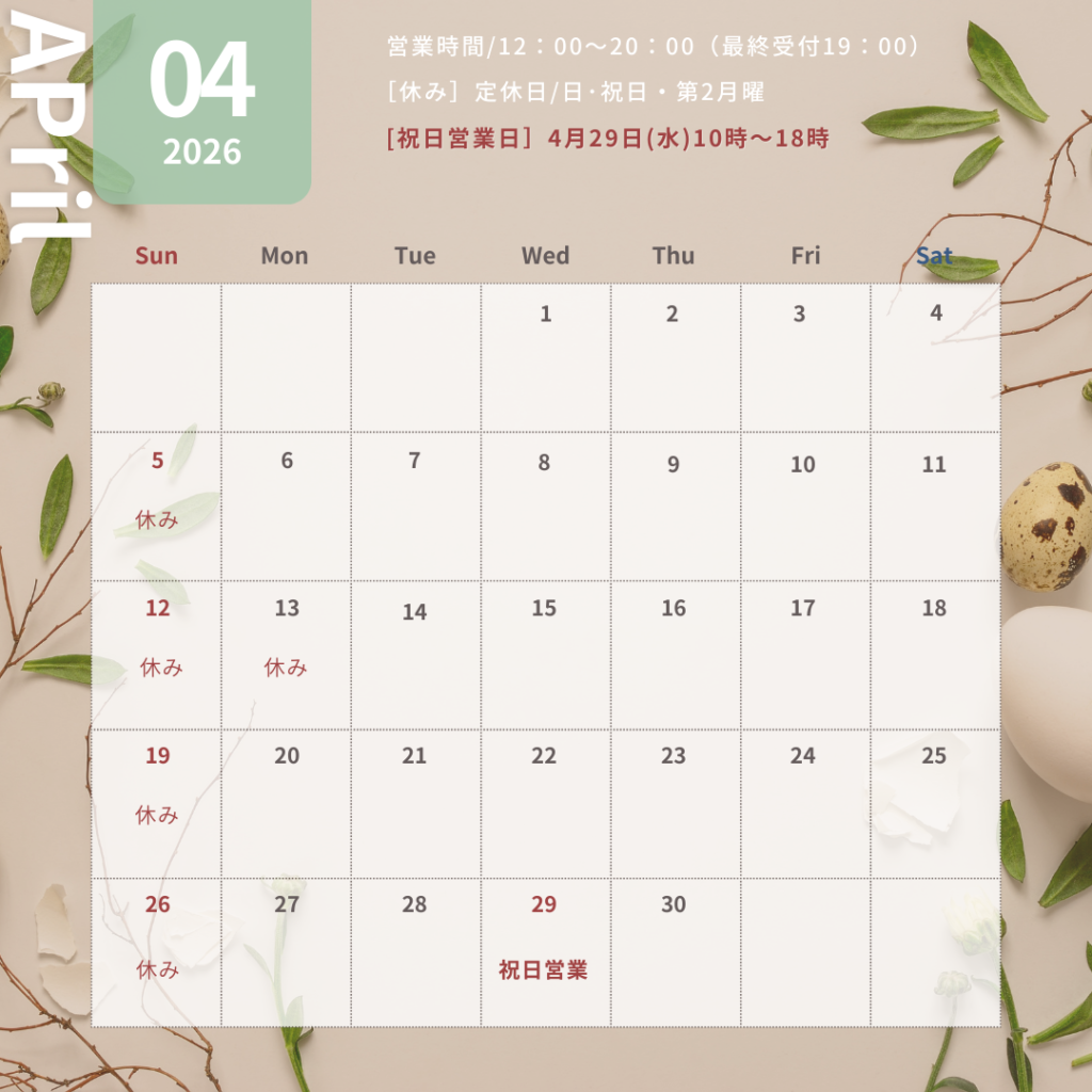 ■祝日営業:4月29日(水)10時~18時で営業いたします。
